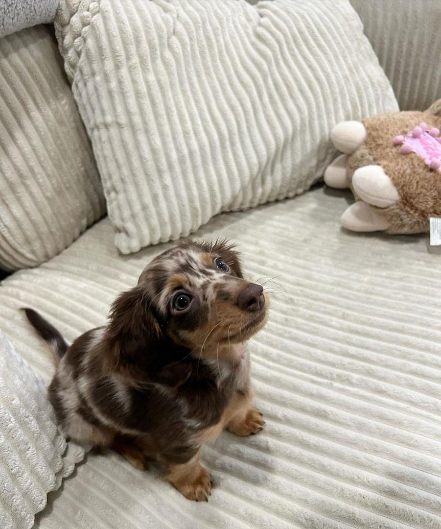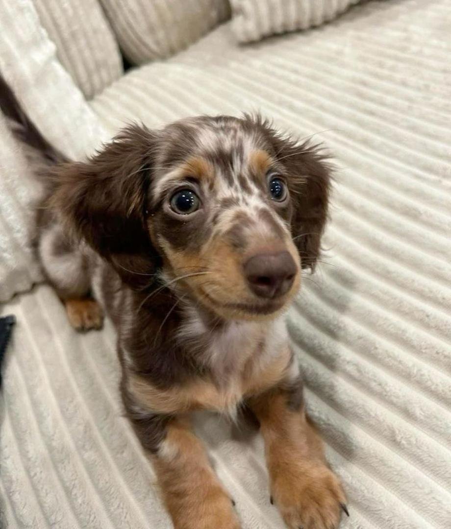 A Dachshund puppy is a young dog of the Dachshund breed, known for its long body, short legs, and playful, curious personality. Originally bred in Germany to hunt badgers, Dachshunds are also called “wiener dogs” or “sausage dogs” due to their distinctive shape.